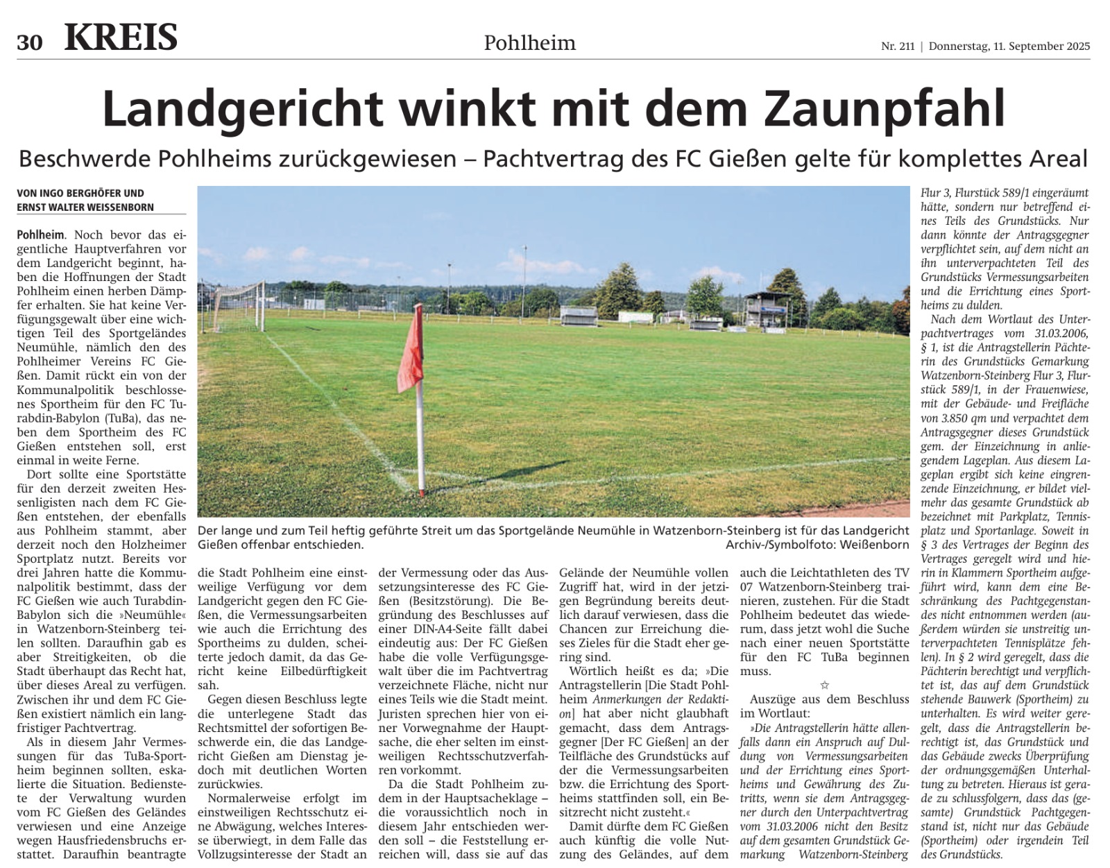 11.09.2025 Pachtvertrag Neumühle gilt für gesamtes Areal