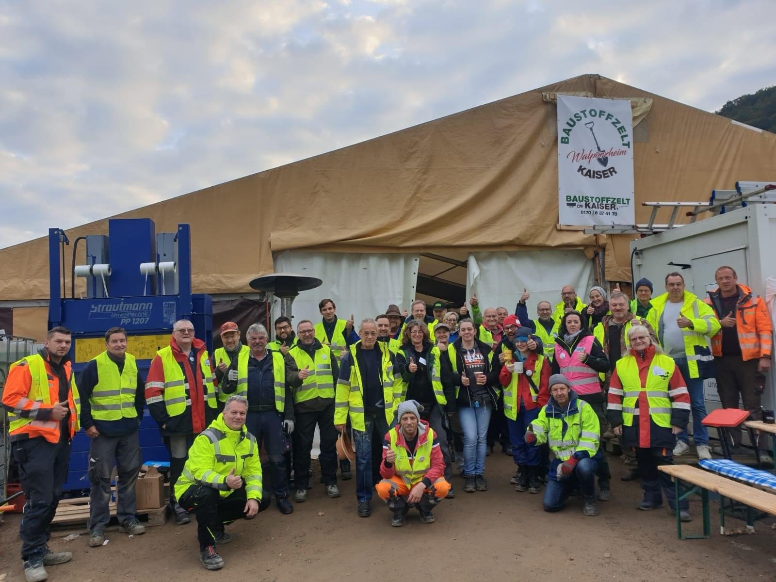 Um den Wiederaufbau kurzfristig zu unterstützen, gründete Wilhelm Hartmann ein über 1.000 Quadratmeter großes Baustoffzelt. Ein freiwilliger Helfer, mit Spitznamen Kaiser genannt, übernahm die Leitung vor Ort, damit Hartmann weitere Hilfseinsätze u.a. in Dernau, Kreuzberg und Bad Neuenahr-Ahrweiler koordinieren konnte. Das Baustoffzelt Kaiser war nach kurzer Zeit mit baumarktähnlichen Abteilungen prall gefüllt mit Sachspenden zum Wiederaufbau, die aus dem gesamten Bundesgebiet von Privatpersonen, Vereinen und Firmen gespendet wurden. Den Gesamtwarenwert bezeichnet Hartmann auf defensiv geschätzt über acht Millionen Euro bis Ende Juli 2022.